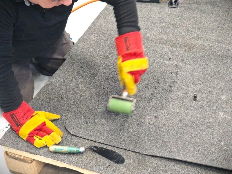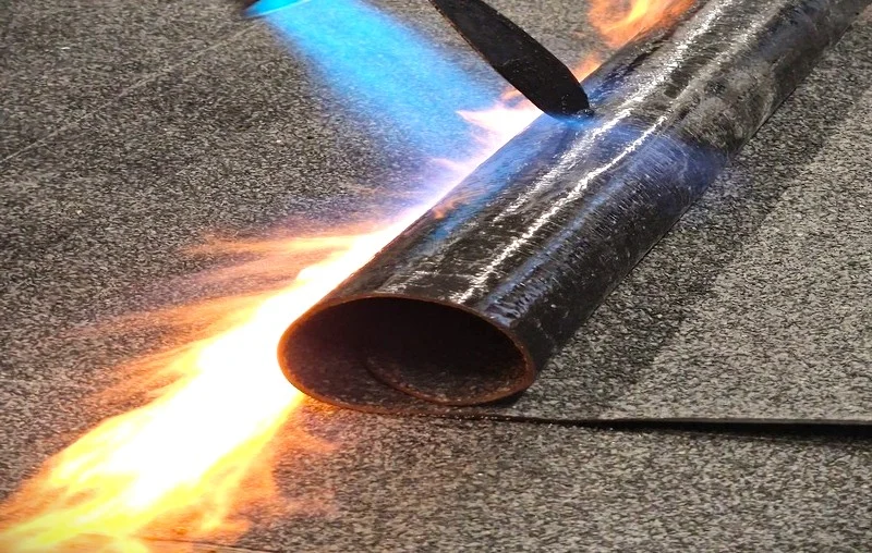 Bituumenrullmaterjalist kattelapi paigaldus.