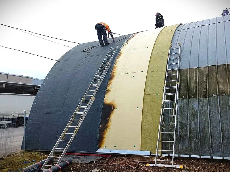 Kuna kasutame kivivilla (Tuletundlikkus A1) ja sertifitseeritud SBS-bituumenrullmaterjale, vastavad meie lahendused kaarhallide kõrgendatud tuleohutusnõuetele (vajalik ladudes ja tootmises). - RIL 107-2022 – Ehitiste vee- ja niiskuskaitse juhised.