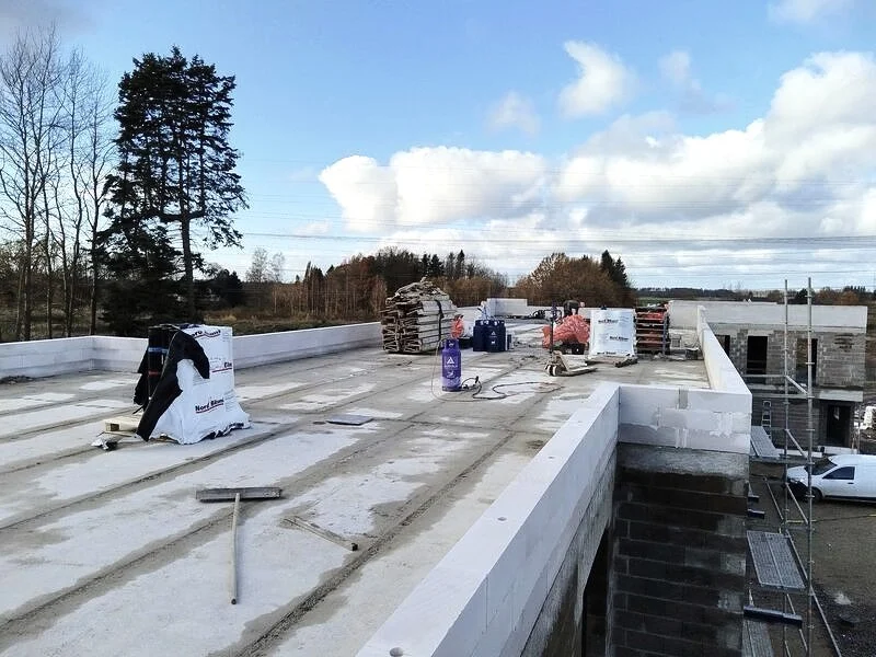 Lamekatuse raudbetoonist aluskonstruktsioon. Eerika Kodud katused Õssu külas Tartumaal ehitas OÜ Evari Ehitus 2024.- aastal. Vaata!