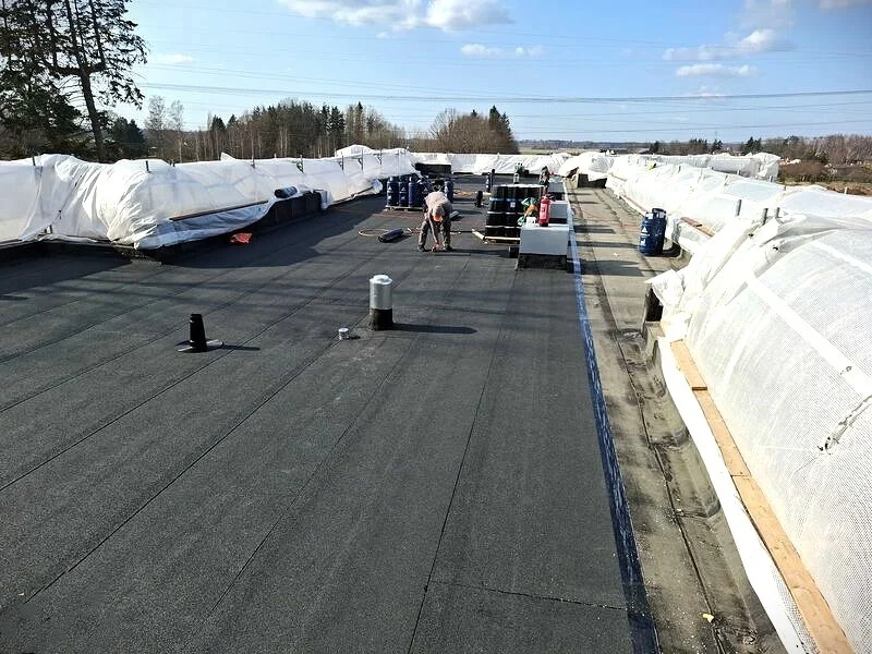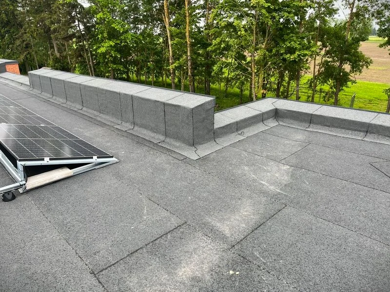 Bituumenrullmaterjalist pealiskihi paigaldus. Eerika Kodud katused Õssu külas Tartumaal tegi OÜ Evari Ehitus 2024. aastal. Vaata!