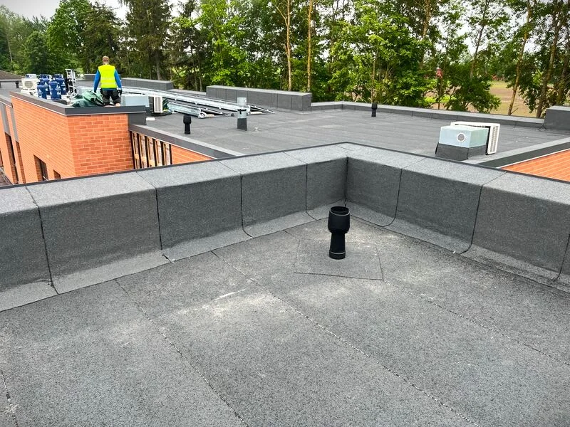 Bituumenrullmaterjalist lamekatus. Eerika Kodud katused Õssu külas Tartumaal tegi OÜ Evari Ehitus 2024. aastal. Vaata!