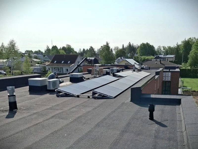Päikesepaneelid lamekatusel. Eerika Kodud katused Õssu külas Tartumaal tegi OÜ Evari Ehitus 2024. aastal. Vaata!